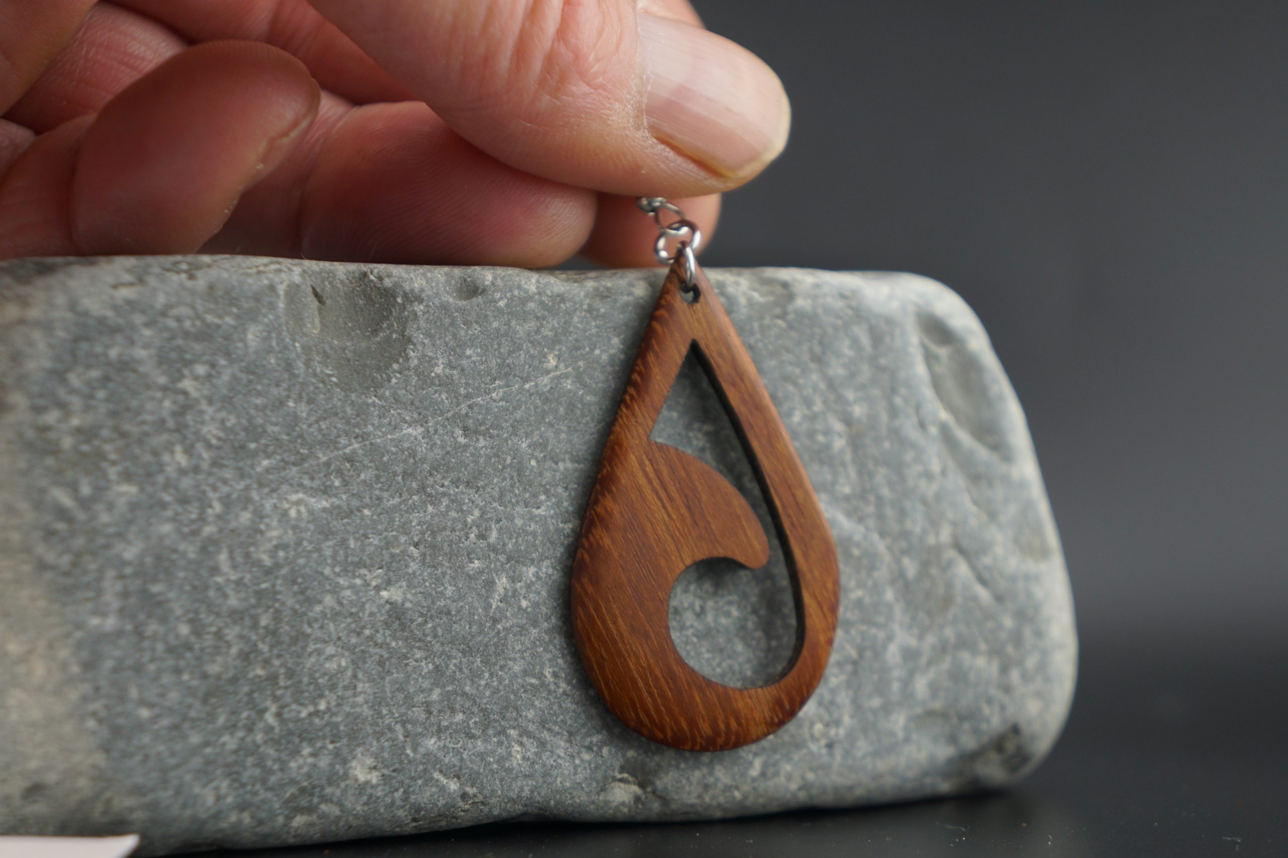 Künstlerisches Ornament: Die geschwungene Aussparung im Inneren der Tropfenform verleiht dem Schmuckstück eine luftige Leichtigkeit és moderne Ästhetik.