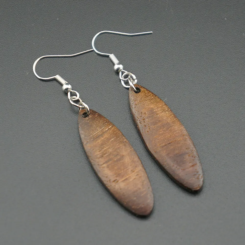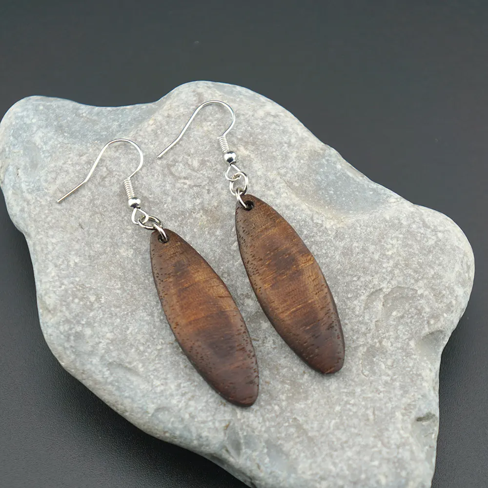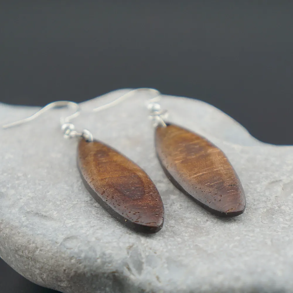Natur in ihrer reinsten Form. Diese handgefertigten Ohrringe aus dunklem Nussbaumholz bestechen durch ihre schlichte Mandelform und eine bewusst natürliche, leicht unregelmäßige Oberflächenstruktur. Ein authentisches Stück tragbare Kreativität, das die warme Ausstrahlung des Holzes perfekt verkörpert.