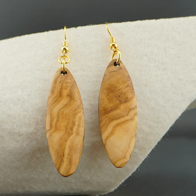 Goldenes Finish: Die hochwertigen, vergoldeten Edelstahlhaken unterstreichen den warmen Charakter des Holzes und verleihen dem Schmuckstück einen edlen Glanz.