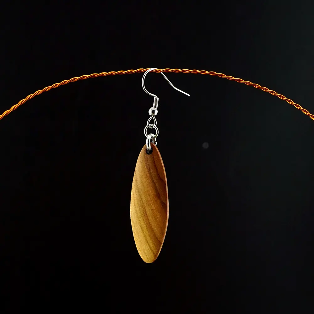 Die Farbenpracht des Obstgartens. Diese handgefertigten, ovalen Ohrringe aus heimischem Zwetschkenholz bestechen durch ihre außergewöhnliche Färbung von Violett bis Rotbraun. Ein elegantes, längliches Design, veredelt mit Edelstahlhaken – natürliche Schönheit in perfekter Form.
