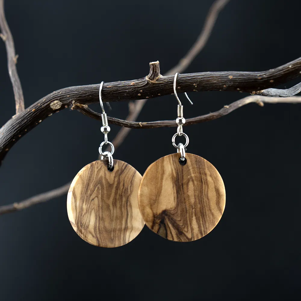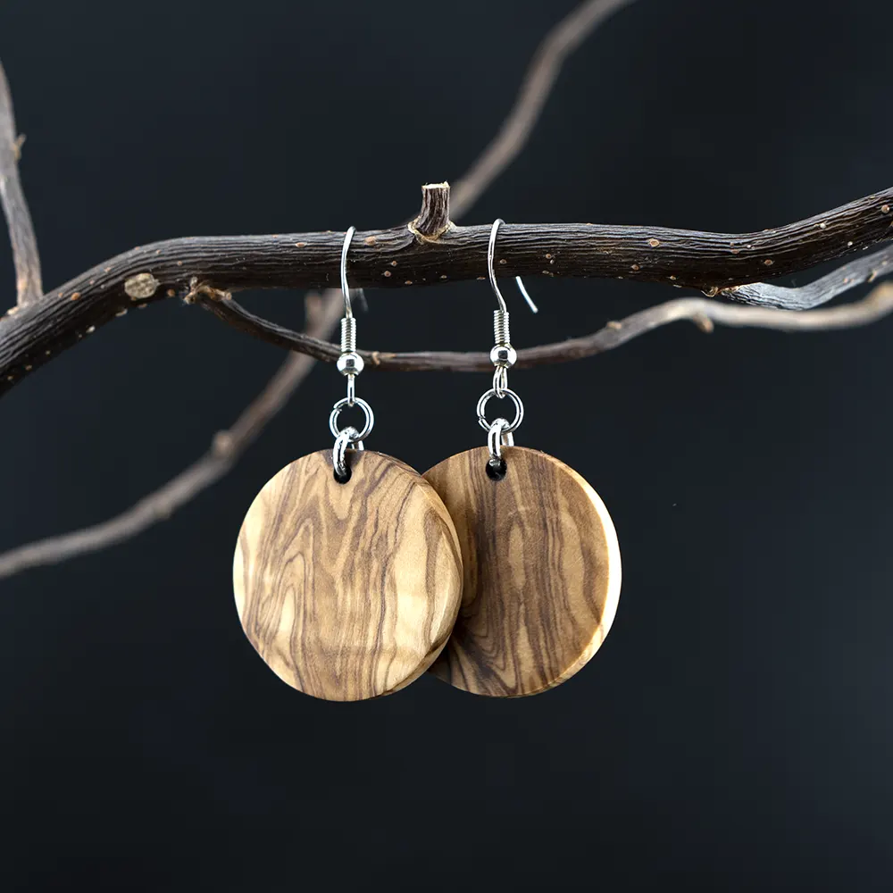 Urwüchsige Kraft in runder Form. Diese handgefertigten Ohrringe aus massiver Wildolive faszinieren durch ihre dramatische Maserung és schlichte Eleganz. Ein authentisches Stück tragbare Kreativität, das die wilde Schönheit des Mittelmeerraums verkörpert.