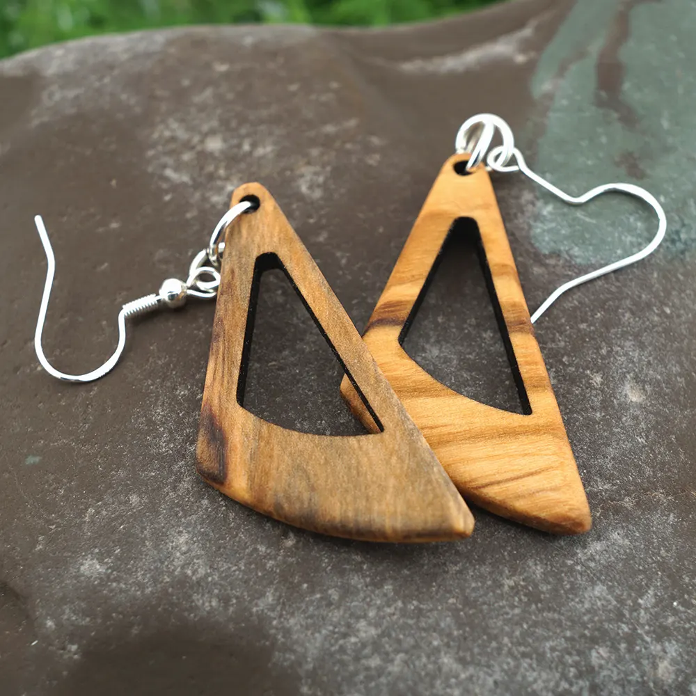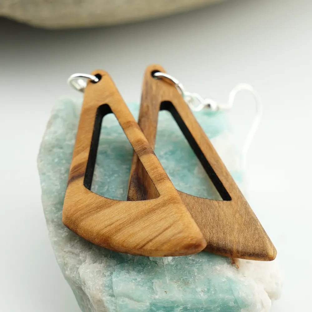 Dieses Modell von TinyArt bricht bewusst mit konventionellen Formen. Die Ohrringe aus hochwertigem Olivenholz bestechen durch ihren gewagten, asymmetrischen Schnitt, der an eine stilisierte, vom Wind geformte Flamme oder ein dynamisches Blatt erinnert. Die markante, lebendige Maserung des Holzes wird durch diese fließende Linienführung besonders eindrucksvoll in Szene gesetzt – ein wahres Highlight für Liebhaber extravaganter Wearable Art.