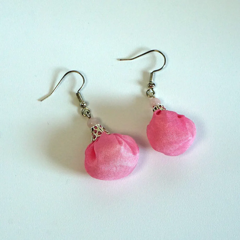 Zarte Romantik: Handgefertigte Seidenkugel-Ohrringe „Babyrosa“ mit Rosenquarz Ein Hauch von Weiblichkeit für jeden Tag. Diese federleichten Ohrringe aus zartrosa Seide bestechen durch echte Rosenquarz-Edelsteinperlen und hochwertige silberne Metallelemente. Handgefertigte Eleganz, die Sanftheit und modernes Design vereint.
