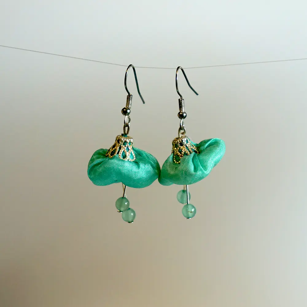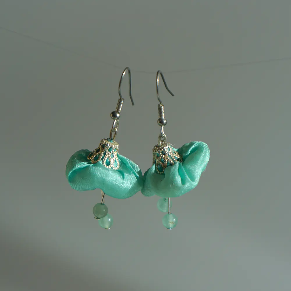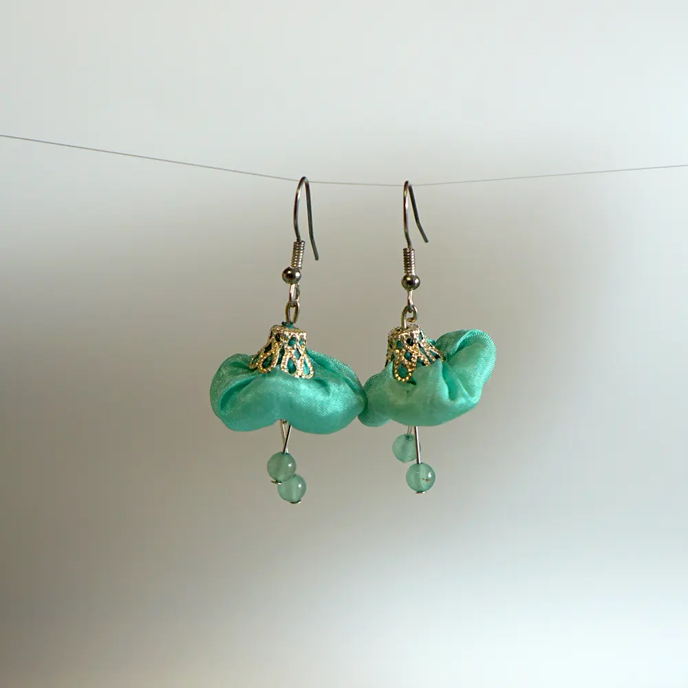 Bringen Sie eine sanfte Frische in Ihren Alltag. Unsere mentagrünen Seidenblumen-Ohrringe sind kleine, handgefertigte Kunstwerke, die durch ihre klare Farbe und die Verwendung hochwertiger Naturmaterialien überzeugen.