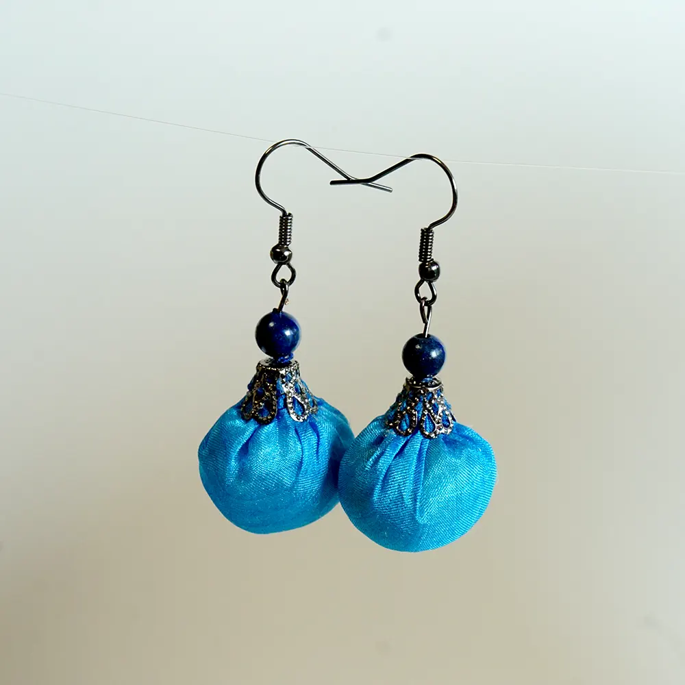 Richtig aufbewahren: Am wohlsten fühlen sich deine Ohrringe an einem trockenen, dunklen Ort (z. B. in einem Schmuckkästchen). Direkte Sonne kann die Farben der Seide mit der Zeit verblassen lassen.