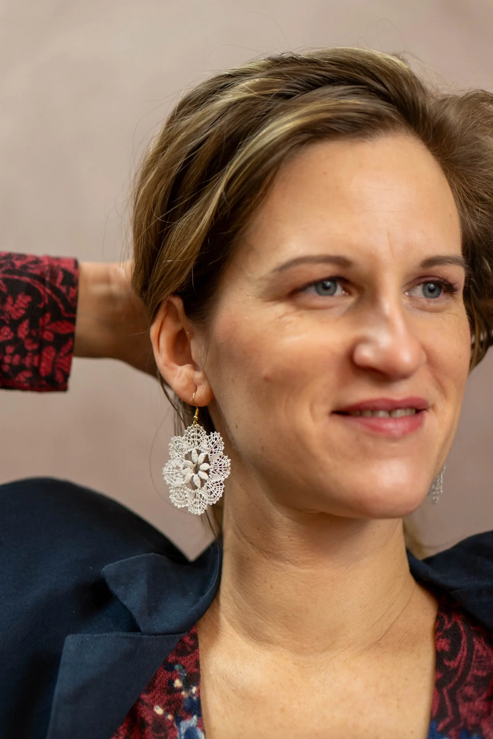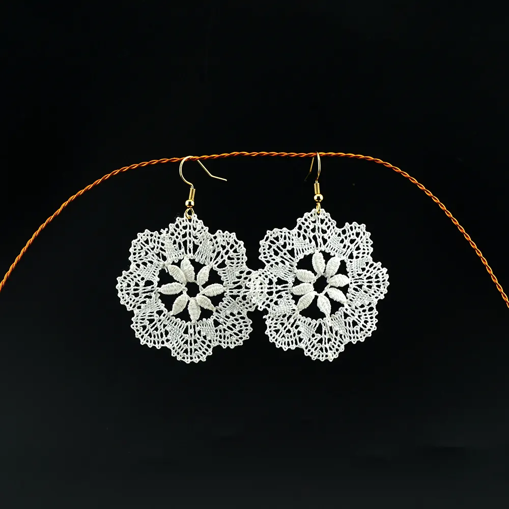 In diesem Schmuckstück treffen die zerbrechliche Schönheit der Blumen und jahrhundertealte Handwerkstechniken aufeinander. Hinter jedem Blütenblatt des schneeweißen, handgeklöppelten Blumenmotivs steht konzentrierte Aufmerksamkeit. Je nach Muster nimmt die Herstellung eines solchen Paares 2 bis 12 Stunden in Anspruch, bis die Fäden ihre endgültige, luftige Form annehmen.