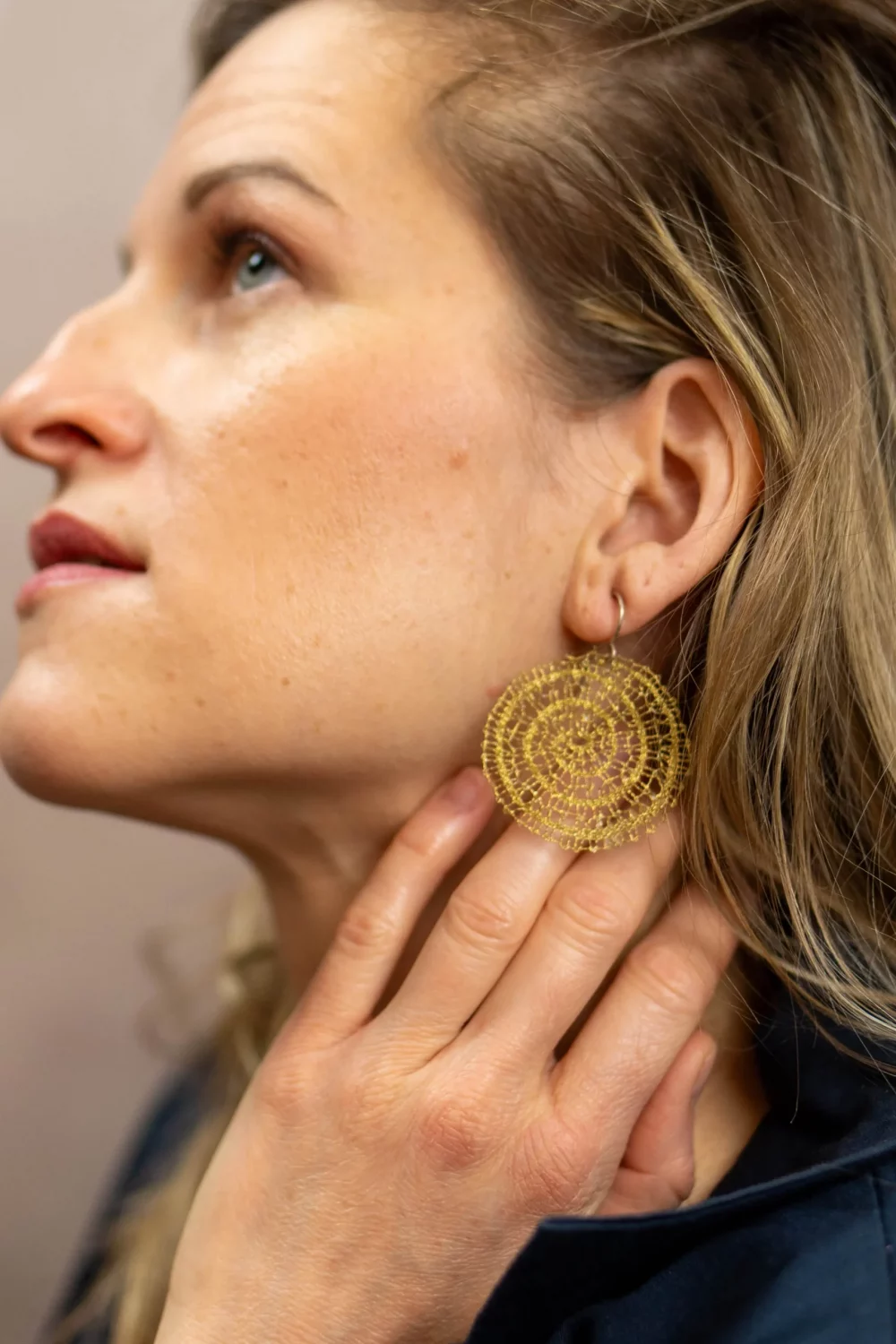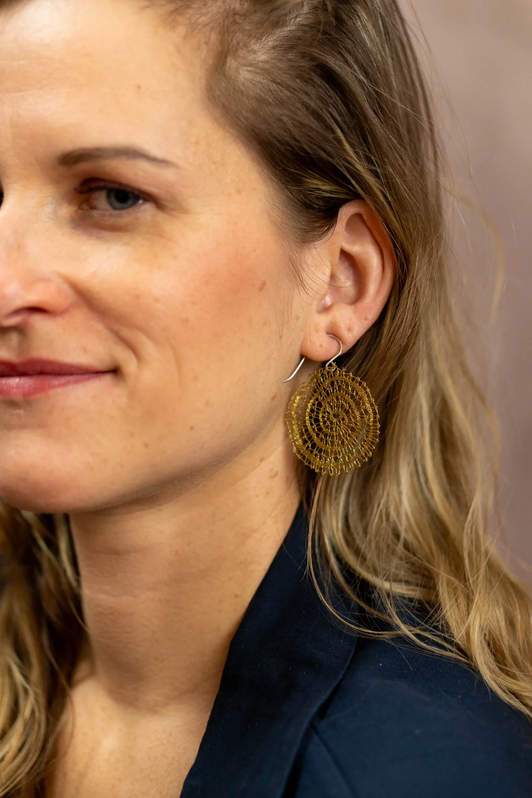 Diese Ohrringe vermitteln das Lebensgefühl von „TinyArt of life“: Die Einheit von goldfarbenen Metall-Accessoires und goldfarbener Spitze verleiht der Trägerin Selbstbewusstsein und ein luxuriöses Lebensgefühl. Ob bei einem Galadinner oder einem besonderen Anlass, bei dem du herausstechen möchtest – dieses Stück trägt den Glanz handwerklicher Kreation und die Kraft der Sonne in sich.